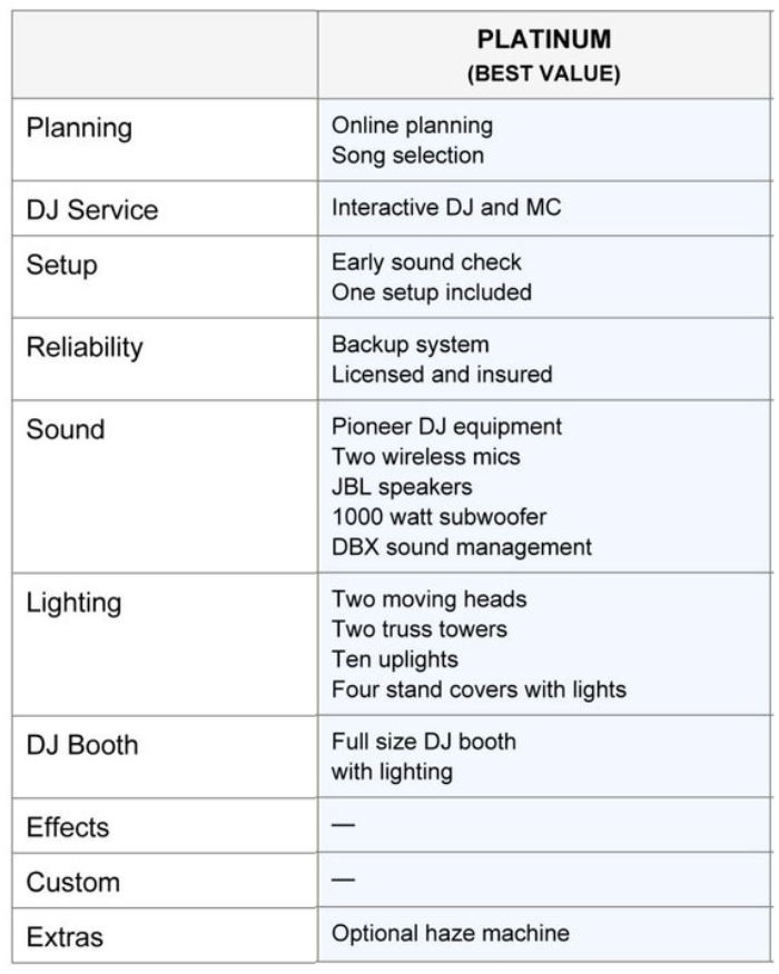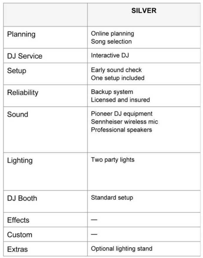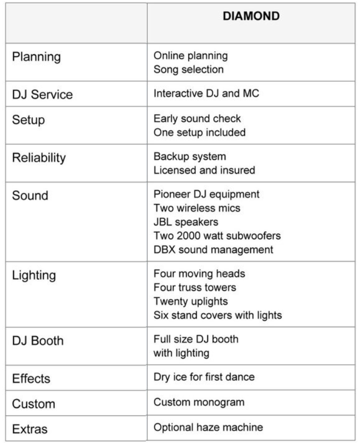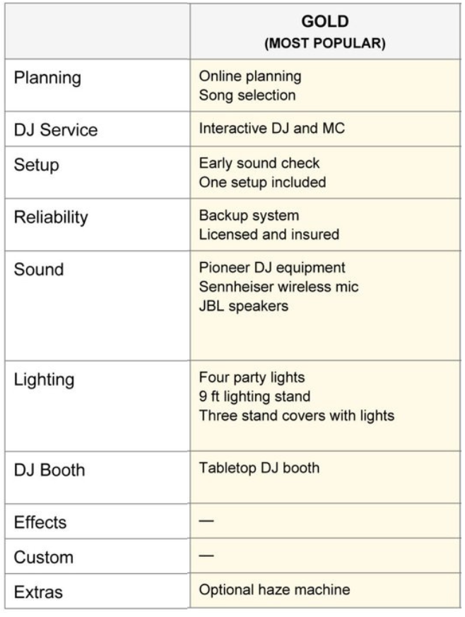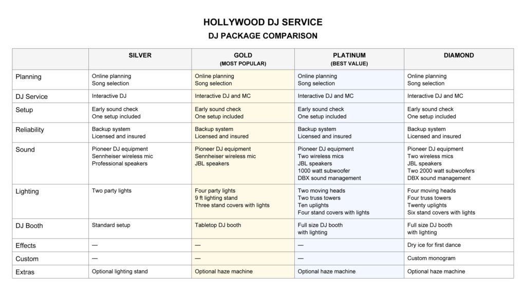 Hollywood DJ SERVICES DJ PACKAGE COMPARISON